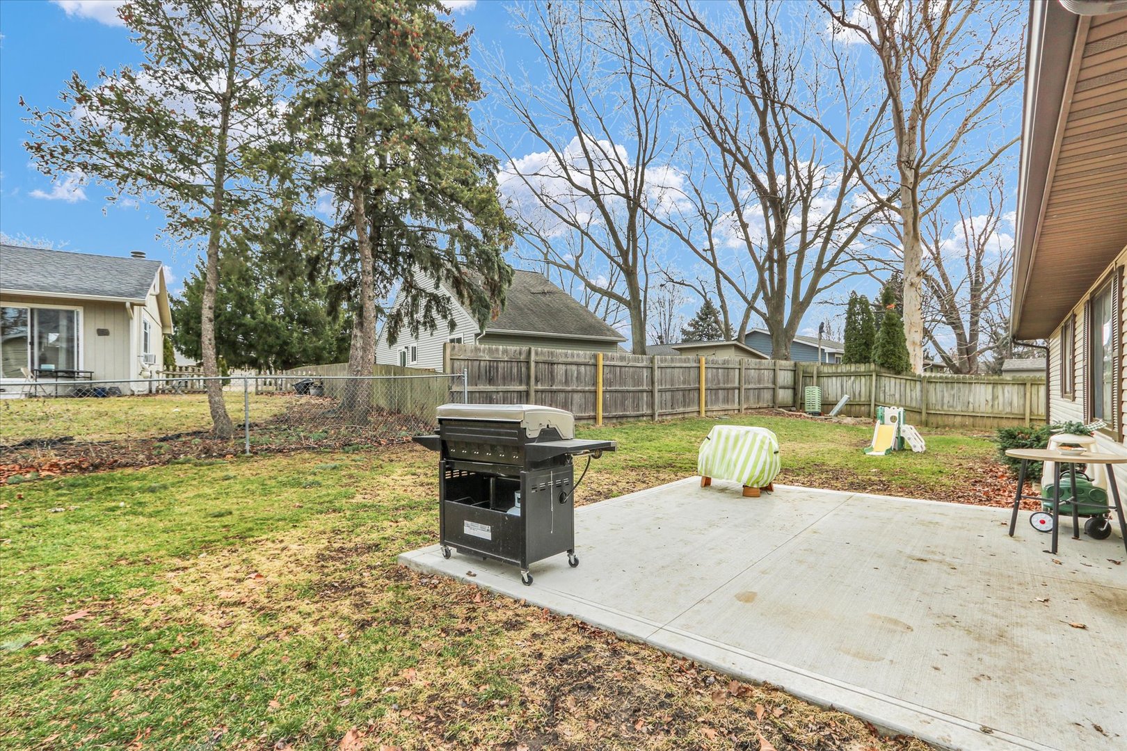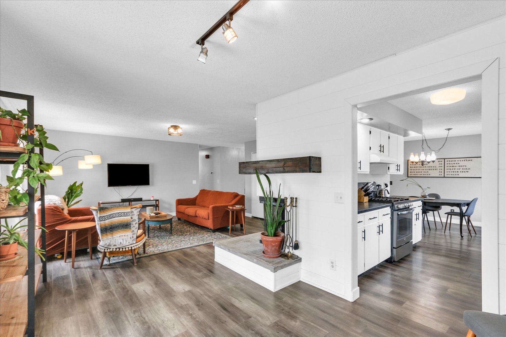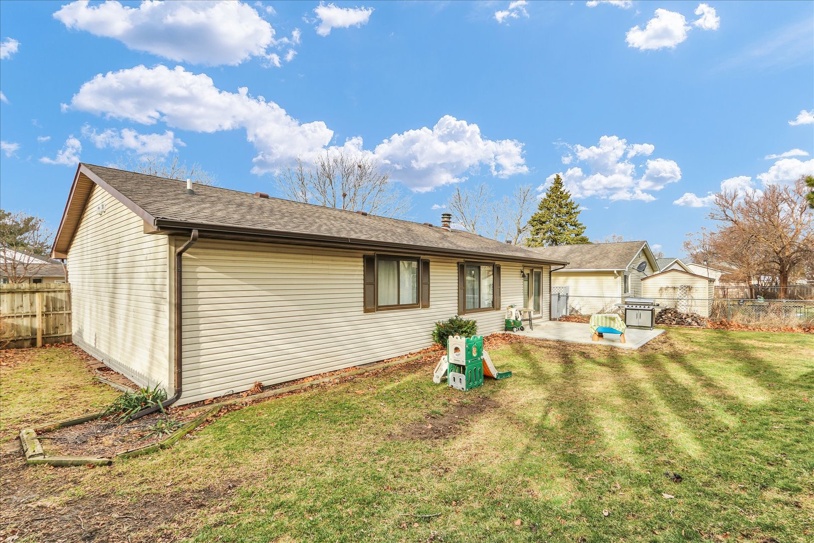 Welcome home to this move in ready ranch offering an open, airy floor plan and modern updates! Flooring (luxury vinyl plank, tile, and carpet) all new in 2021. Cozy living space highlighted by shiplap detail and a solid concrete fireplace hearth (2021). Between both bathrooms they have been refreshed and updated with toilet, sinks, faucets and fixtures. Roof is just 4 years old, with gutters replaced in 2022. Step outside to a spacious yard and a brand new concrete patio (Fall 2025) This is all ideal for gatherings and relaxing evenings! |