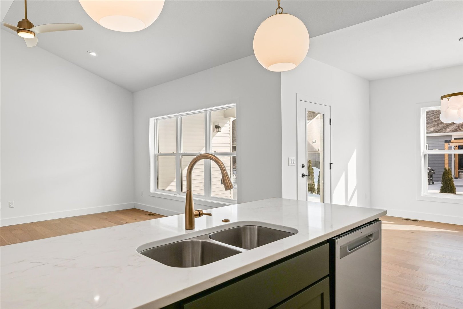 BEAUTIFUL standalone condo unit in the Liberty on the Lake subdivision. This home has 3 bedrooms on the 1st floor and a finished basement containing the 4th. You'll find off-white kitchen cabinets, low maintenance quartz countertops, and a gorgeous island. The covered patio off the casual dining area will be perfect for those warm summer nights. The primary suite contains a spacious walk-in closet and tiled shower. You'll love the modern, matte black fixtures throughout, cozy interior, and especially the rec room in the basement. This new construction home is perfect for your family to call home! |