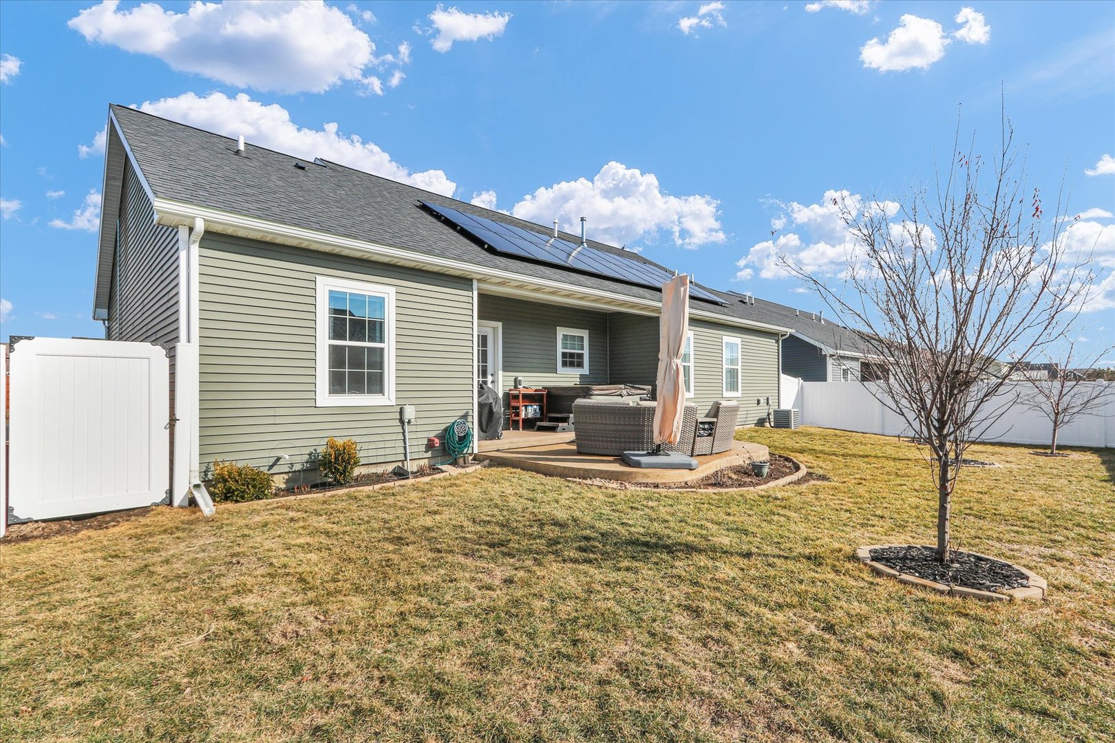 Eco-Friendly Luxury Awaits! Live the dream of low energy costs in this stunning 2020-built ranch. The showstopper? A fully paid-off solar system (2021), an EV 220V garage station, and the private 3-person hot tub. Inside, sun-drenched open-concept living shines with granite counter tops, cultured marble-finished baths (featuring bidet-ready outlets!), and wood laminate flooring. The primary suite is a dream with IKEA closet system and double sink in primary bathroom with walk in shower. Beautiful backyard with a stamped patio overlooking a mini-orchard of fruit trees. Smart home ready and minutes from UIUC, parks, shopping and dining! |