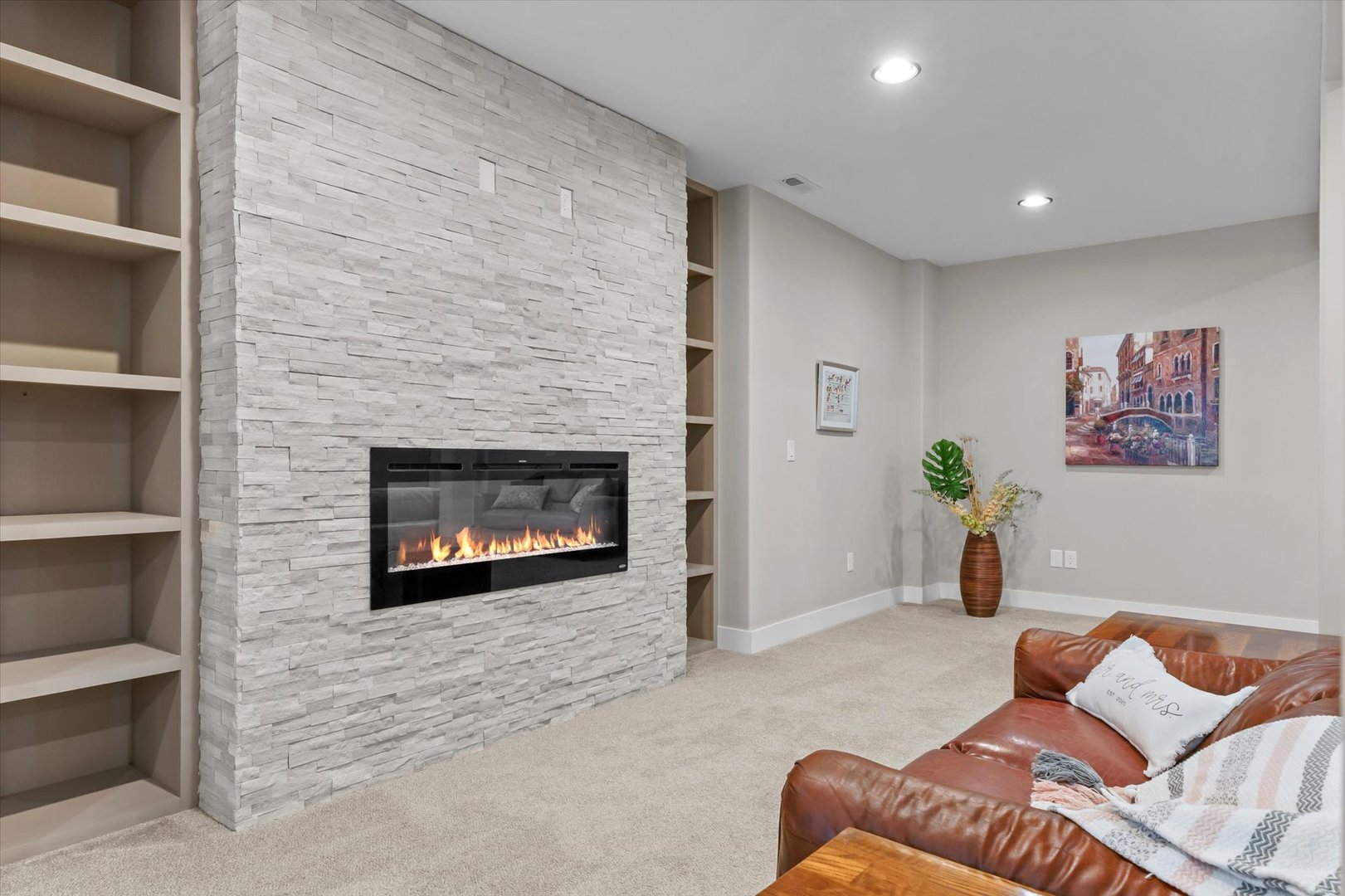 Nestled in the highly sought-after Jacobs Landing subdivision and located within the acclaimed Mahomet School District, this stunning custom-built home offers an exceptional blend of luxury, comfort, and everyday livability. A spacious covered front porch welcomes you into a light-filled interior where thoughtful design and refined finishes shine throughout. Highlights include ceiling-height custom cabinetry, stone countertops in the kitchen and baths, upgraded designer lighting, solid hardwood floors, illuminated built-ins, and dramatic floor-to-ceiling stone fireplaces that anchor the living spaces. The kitchen is truly a showpiece, featuring a walk-in butler's pantry, wine refrigerator, and a dedicated coffee bar-perfectly suited for both effortless daily living and elevated entertaining. Retreat to the spa-inspired primary suite, complete with a freestanding soaking tub, custom tile shower, and a generous walk-in closet. Everyday functions are equally impressive, with a spacious mudroom perfect for backpacks and outerwear, along with an oversized laundry room designed for convenience. The expansive finished basement offers an exceptionally large additional living area filled with natural light, perfect for a recreation space, home office, gym, or guest retreat. And don't let the 2.5-car garage label fool you, the square footage rivals many three-car garages. Beautifully maintained landscaping enhances the curb appeal, featuring a charming front garden, lush backyard sod, and a thoughtfully placed tree that adds both character and shade. The exceptionally large, fully fenced backyard provides abundant space for entertaining, play, pets, or future outdoor additions. An in-ground sprinkler system completes this exceptional property. |