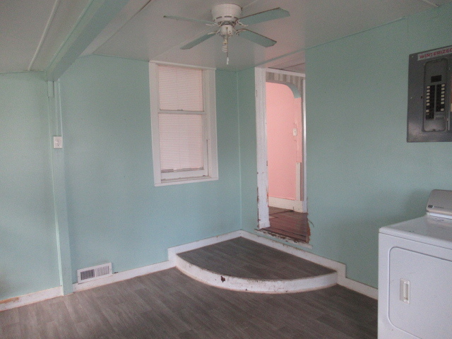 Step up to the front porch and sit awhile! Or choose the back deck for evening relaxation. This house is so neat you could move right in. An arched doorway separates the living room from the dining room. The new style barn sliding doors have been left behind. The bathroom is stylish with an oval sink and hand-held shower head. The kitchen colors are bright but attractive. There is even a tankless water heater and side-by-side refrigerator. A small staircase leads upstairs to tandem bedrooms. What are you waiting for? |