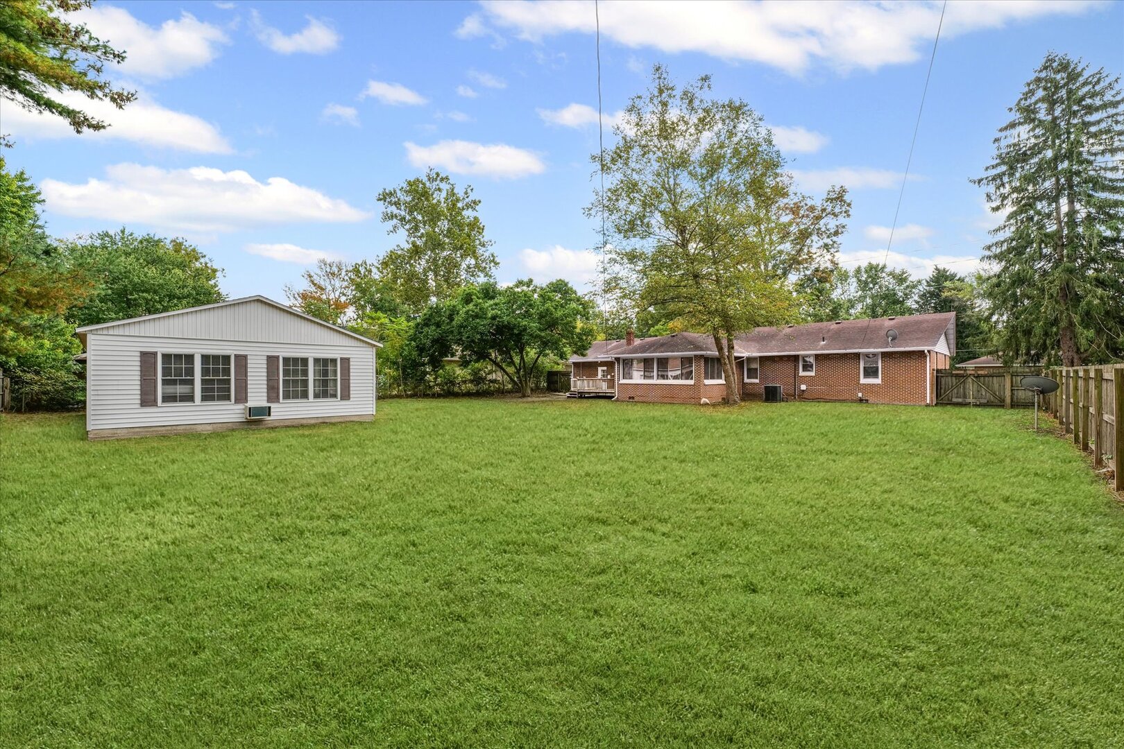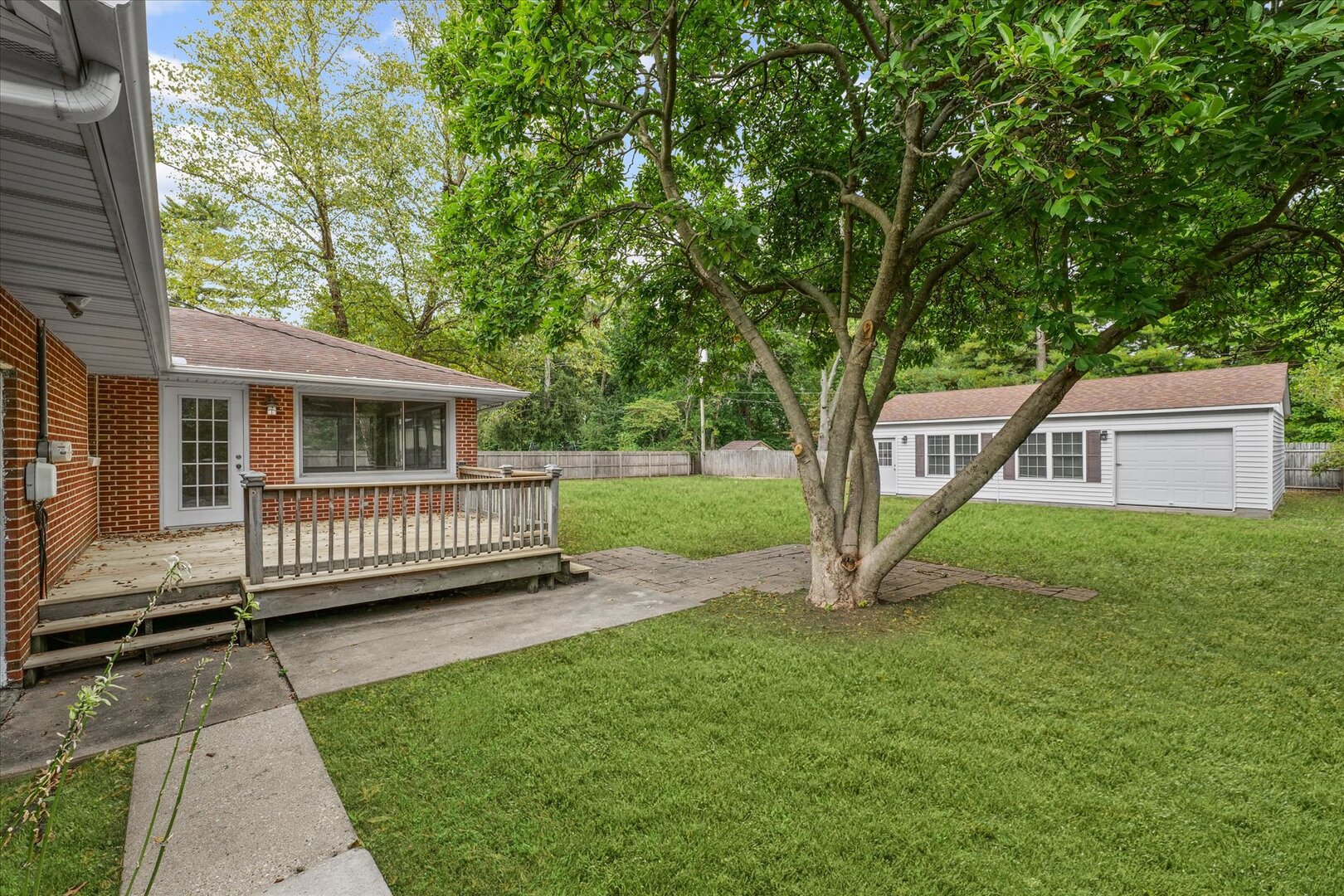 What a joy it will be for you to preview this meticulously maintained, sprawling, all brick ranch, sitting on a very large, private, fenced-in lot for your enjoyment. Inside you find spacious rooms, gleaming hardwood floors and replacement double-hung windows flooding the home with natural light. This floorplan is made for entertaining friends and family. As you enter the home, you will be welcomed by the large living room. To your left, you will find four bedrooms and two full bathrooms. To your right,you will note the centrally located dining room, adjacent to both the kitchen and the four seasons room, overlooking your private back yard. From there, you will exit to the sunroom onto an expansive deck and last, but not least, you can access the backyard, which also offers up a separate building, measuring in at 24sf x 36sf, for a total of 864sf. Inside the detached building, you will find a 24ft x 24ft finished room, with a heating/cooling system, that could be used for anything your imagination could desire. Game Room, Family Gatherings, Home Business, Hobbyists, Collectors and so many other opportunities for this extra space! The remaining 12sf x 24sf space is unfinished, with an overhead door, perfect for gardening supplies, tools, riding mower and more. Did I mention there is an 8ft gate on the West side of the home, that enables you to drive whatever motorized items you desire out to the back building, proving even more convenience for the new homeowner?! Oh, I almost forgot! There is also turn around access in your driveway, to ease the entrance and exiting of your new home. This property is in turn-key condition and waiting for you. Schedule your tour today, to make this house your HOME! :) |