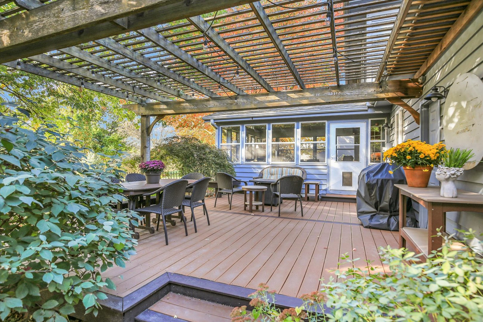 Welcome to 4005 Pinecrest Road, a beautifully updated two-story home in the sought-after Lincolnshire Fields neighborhood of Champaign. Known for its mature tree-lined streets, lower county taxes, and relaxed golf-cart-friendly lifestyle, this community offers a country-club feel with easy access to Lincolnshire Fields Country Club just minutes away. Inside, you'll find 4 spacious bedrooms, 2 and 1/2 baths, and a finished basement with plenty of storage. The kitchen is designed for entertaining, featuring a handmade, one-of-a-kind tile backsplash and an open layout that flows into the living and dining areas. The primary suite features a luxurious bath with a soaking tub, separate shower, and cozy heated floors. Enjoy outdoor living on the Trex deck with a pergola, overlooking a generous yard shaded by mature trees, or relax in the inviting three-season room. The garage even includes a dedicated space for a golf cart which is perfect for neighborhood rides. With numerous updates completed in 2020, this home combines charm, comfort, and modern convenience in one of Champaign's most desirable neighborhoods. |