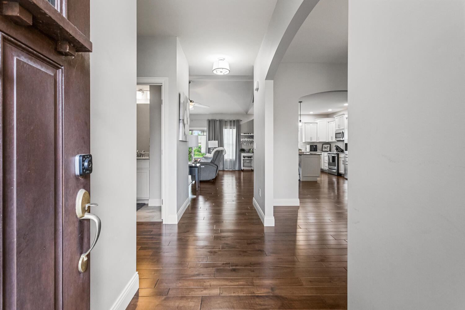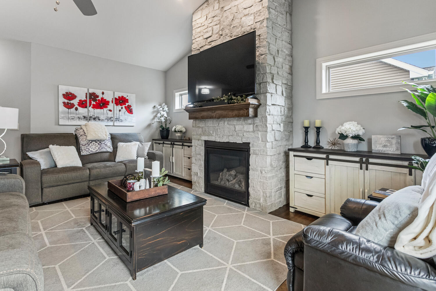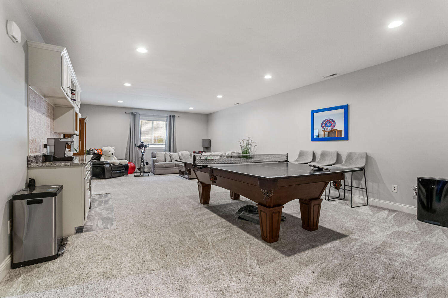 This beautifully maintained, better-than-new ranch home offers the ideal blend of thoughtful design, finished amenities, and an unbeatable location close to top-rated schools, shopping, and dining-everything today's busy households value most. With 4 bedrooms, 4 full baths, a partially finished basement, and a 3-car garage, the open-concept layout is both functional and inviting. The cathedral-ceiling great room centers around a cozy gas-log fireplace and flows seamlessly into a dedicated dining area-perfect for everyday living and entertaining alike. The kitchen is a true gathering space, featuring a large granite and shiplap island, stainless steel appliances, abundant prep space, and hardwood floors throughout the main level. Three bedrooms are located on the main floor, including a spacious primary suite with a spa-like bath offering a soaker tub, walk-in shower, private toilet area, and generous walk-in closet. Practical details elevate daily life, including a separate laundry room with folding space and a welcoming mud/drop zone off the garage complete with bench and coat hooks. A main-floor mother-in-law suite adds flexibility, offering its own private bath and French doors that open to a peaceful private patio. The finished basement expands your living space with a large fourth bedroom, full bath, movie room, built-in desk area, and an impressive 1,238 sq ft of unfinished storage-complete with multiple storage racks, something rarely found in new construction. Step outside to enjoy the professionally landscaped, fully fenced backyard-a standout upgrade you won't get with a new build. Mature plantings, concrete BorderMagic edging, window treatments already in place, and a rear patio off the great room create a move-in-ready outdoor retreat perfect for entertaining or unwinding. This home offers the ease of a newer build without the added expense, time, or hassle-all in a location that keeps you connected to schools, dining, and everyday conveniences. |