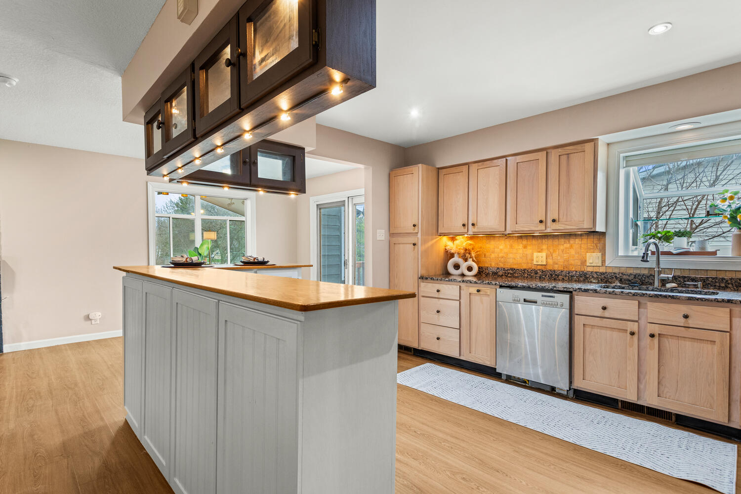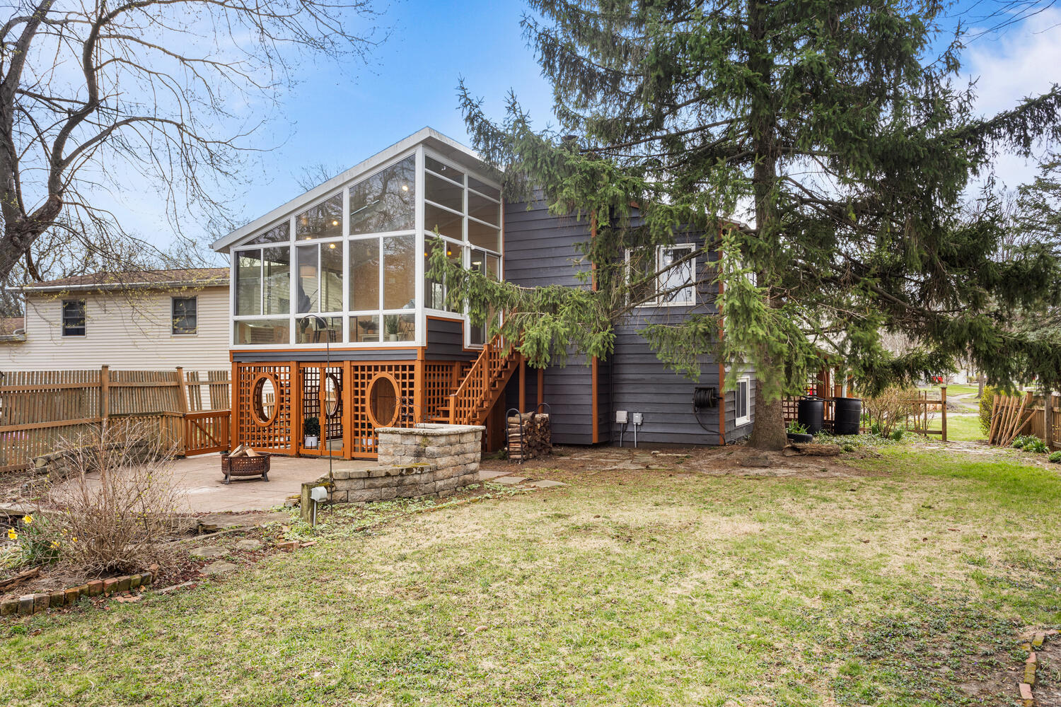 Welcome to this rare find nestled in a quiet, welcoming neighborhood within a sought-after school district. This home offers easy access to scenic walking paths, playgrounds, and outdoor recreation. Step outside and fall in love with the absolutely beautiful backyard, a true private retreat featuring mature trees, a peaceful creek, lush plant and animal life, a koi pond, and two spacious patios, perfect for relaxing and entertaining. When the leaves fill in, the setting feels like country living right in town. A standout feature of the property is the impressive shed, offering a large interior space that is fully insulated and finished with drywall. It is equipped with power and lighting, baseboard heat, and a window air conditioning unit, making it comfortable year-round. The shed also includes a built-in workbench and a TV mount, creating a versatile space ideal for hobbies, projects, or a personal retreat. Inside, the home has been refreshed with fresh interior and exterior paint and offers plenty of space for everyone to spread out and enjoy. The kitchen features an L-shaped island with breakfast bar seating, while a bright and inviting sunroom brings the outdoors in, adding additional living space filled with natural light and serene backyard views. Two gas fireplaces create a warm, cozy atmosphere during the colder months. Enjoy stunning views year-round, from the second-story living room with a large picture window to the sunroom overlooking the backyard below. The primary suite includes a private master bath, offering a comfortable and relaxing retreat. This home truly embraces indoor-outdoor living in every season, whether you're enjoying summer evenings on the patio or winter mornings watching nature from inside. Don't miss your chance to own this one-of-a-kind property in an exceptional location. View it today! |
